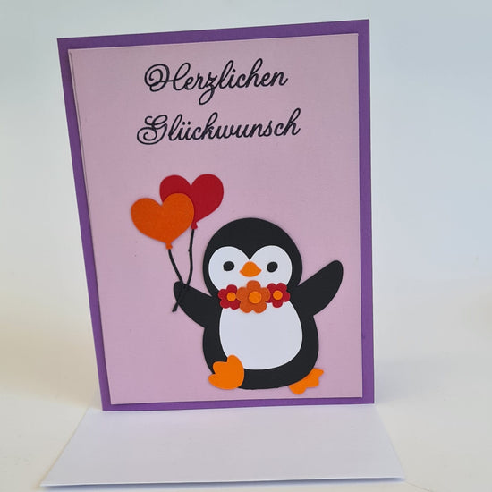 Geburtstagskarte "Pinguin mit Herzballon" – Liebevoll und handgemacht